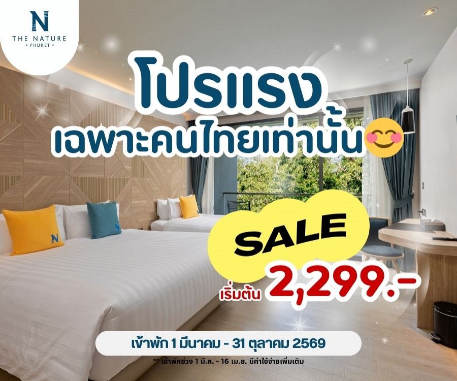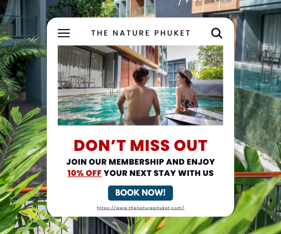 Welcome to The Nature Phuket, a contemporary 5-star resort near Patong Beach overlooking the Kalim Bay. Our stylish 300-room hotel is a tranquil sanctuary surrounded by lush green nature, only a 5-minute drive to the vibrant beach, shopping, and nightlife at Patong Beach.