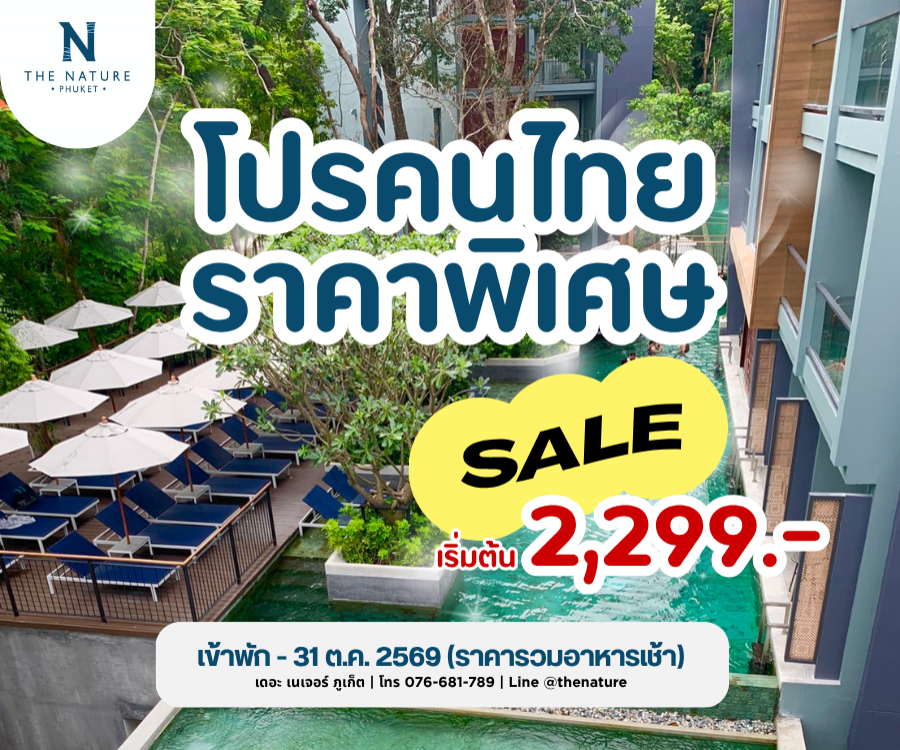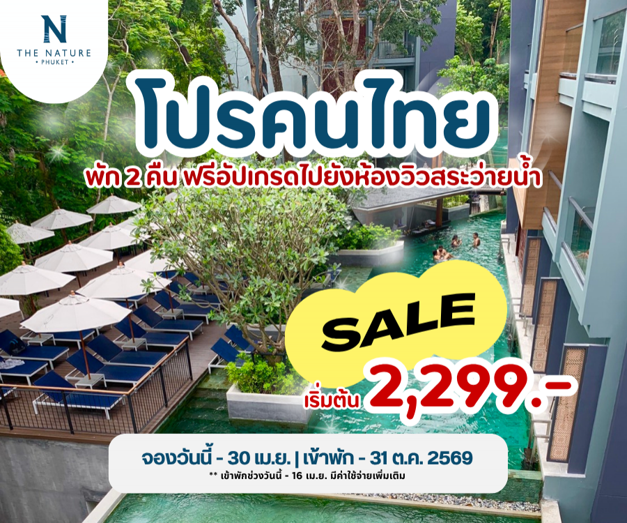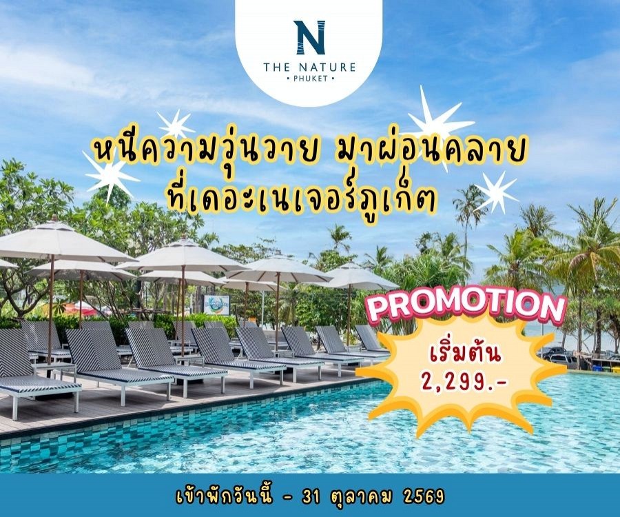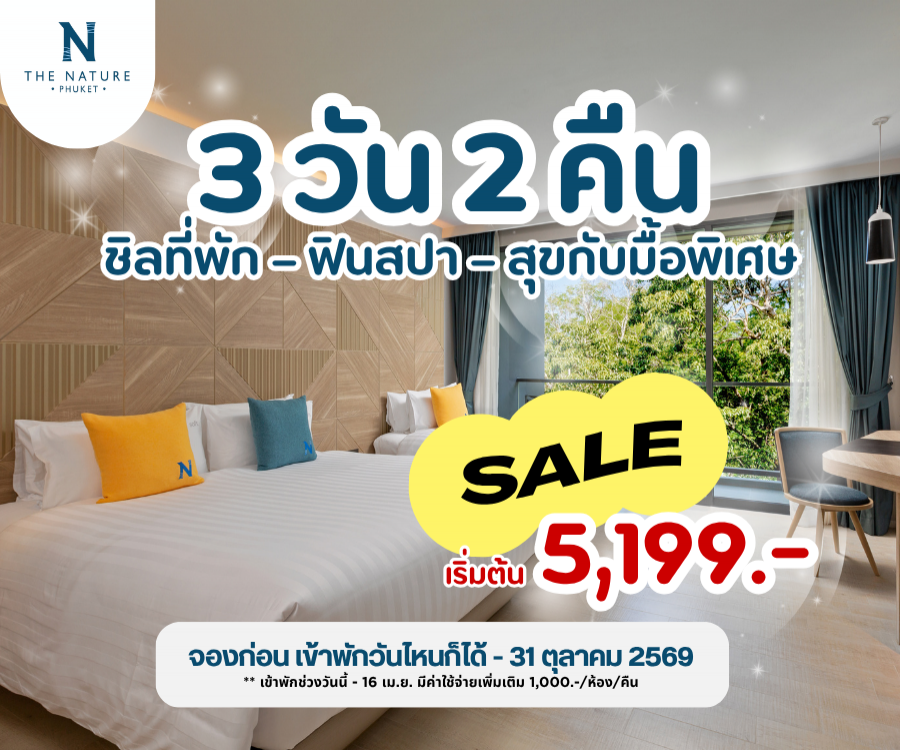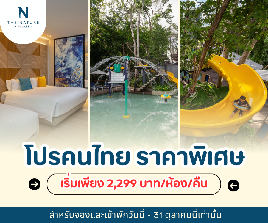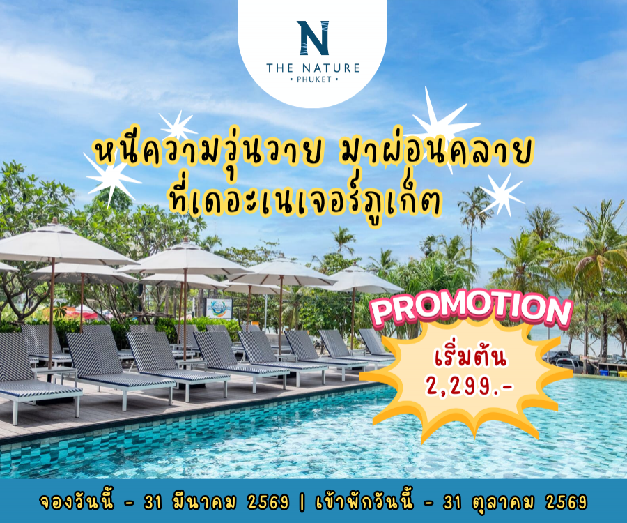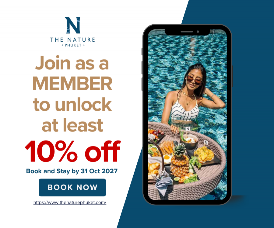 Welcome to The Nature Phuket, a contemporary 5-star resort near Patong Beach overlooking the Kalim Bay. Our stylish 300-room hotel is a tranquil sanctuary surrounded by lush green nature, only a 5-minute drive to the vibrant beach, shopping, and nightlife at Patong Beach.