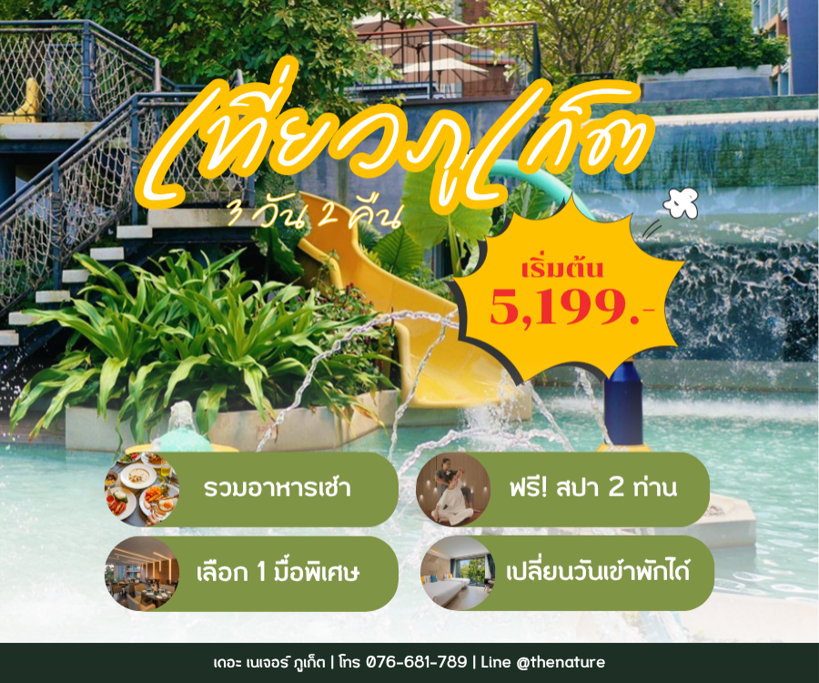 Relax in chic guest rooms and suites with beautiful design details and modern amenities, make a splash in one of our three outdoor swimming pools, and spend hours being pampered at the luxury spa. With a kid’s club, fitness gym, meeting rooms, and choice of dining venues, there is something for everyone at The Nature Phuket.